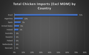 In the last 12 months, Brazil accounted for 72% of South Africa’s total poultry imports, excluding mechanically de-boned meat (MDM).